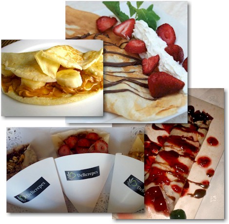 Básicos: 1. Dulce de leche y chocolate con salsa de chocolate. 2. Frutillas con crema chantilly con salsa de frutilla o chocolate. 3. Banana split: banana con dulce de leche, con salsa de chocolate.